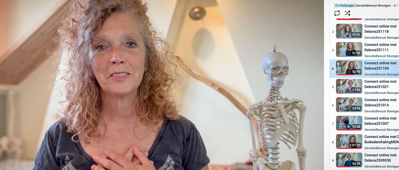 We keren terug naar ons oorspronkelijk voelbewustzijn, onze lichaamswijsheid. Met een zachte nieuwsgierige blik onderzoeken we de natuurlijke bewegingen van ons skelet. Ik vertel je niet wat jij moet voelen. Je eigen ontdekkingen leiden tot meer bewegingsvrijheid in je dagelijks leven, moeiteloos met ontspannen spieren.